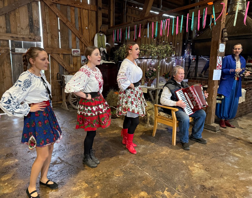 Have traveled to a fair number of towns & villages since you last heard from me. We are in our 4th hotel, making our way by bus. The longest ride was five hours, but with stops, the time passes quickly. Plus, as I mentioned earlier, there are just 23 of us traveling together, so we have lots of room in a large passenger bus. Our bus driver, Robert, is a master of maneuvers. And, our tour leader Anna is a “feeder”. We are constantly being treated with shots of vodka, candy, cookies, gingerbread, etc. Never even a remote chance of being hungry.